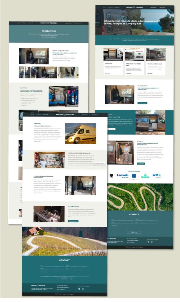 Passioné de voyages nomades, Sylvain a lancé son activité dédiée à l’aménagement de fourgons familiaux. Il avait besoin d’un logo et d’une identité visuelle reflétant son univers, une identité sobre et géométrique, puissante et équilibrée, qui accompagne aujourd’hui son site web et met en valeur son savoir-faire.